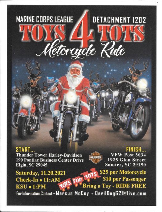 Toys For Tots Motorcycle Ride Thunder Tower Harley Davidson Columbia Sc November 20 2021